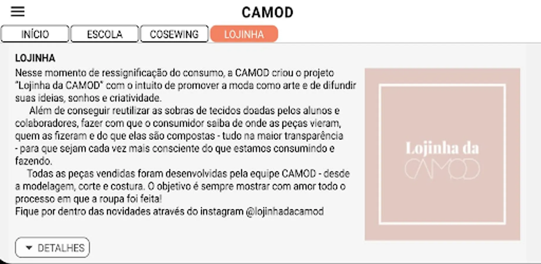 CAMOD's history is developed by women who believe in fashion as an art and as an instrument for the dissemination of ideas, dreams and creativity. The space was born from the desire to transform the way fashion is seen and consumed, valuing the individual and sustainability.