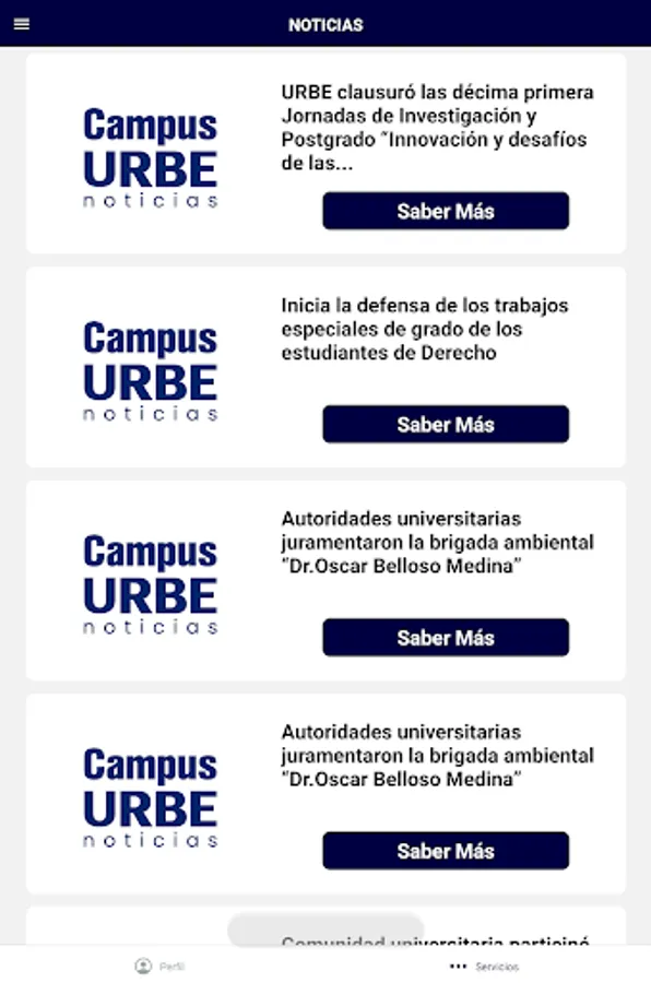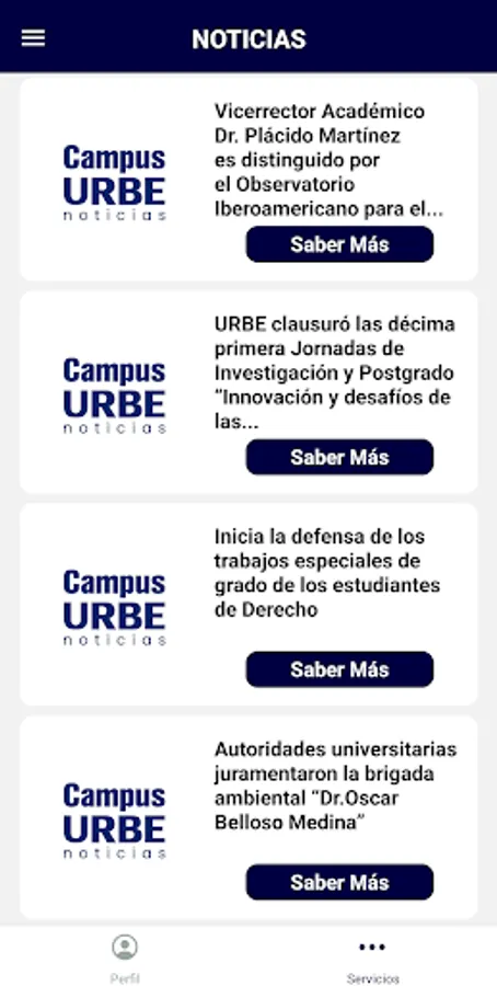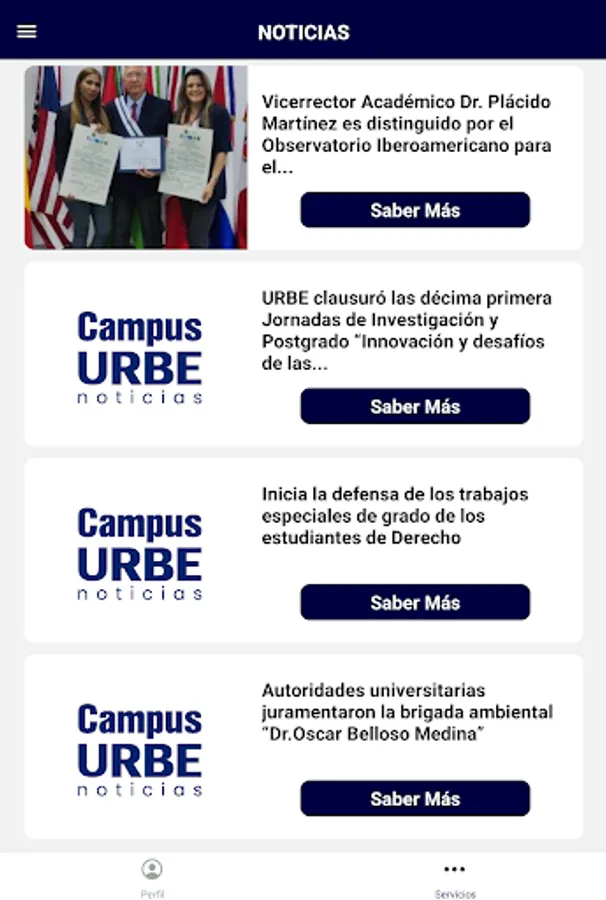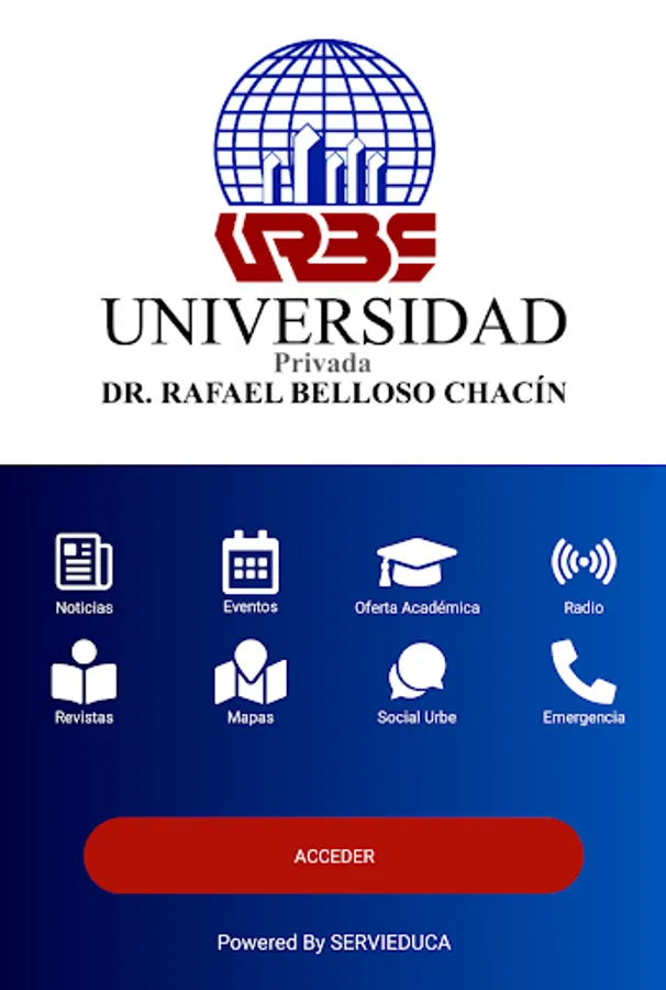 The mobile application of the Dr. Rafael Belloso Chacín Private University allows its students and professors to carry out the following consultations and procedures: