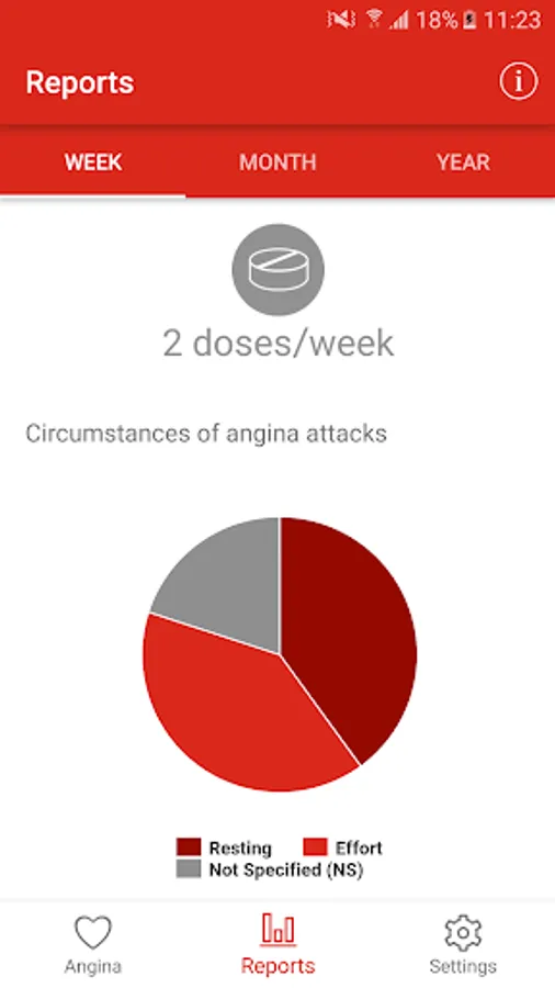 The application’s reporting function will enable doctors to follow the evolution of their patients’ angina attacks over time. For this purpose, AnginaControl displays the data by week, month, or year, in graphs showing: