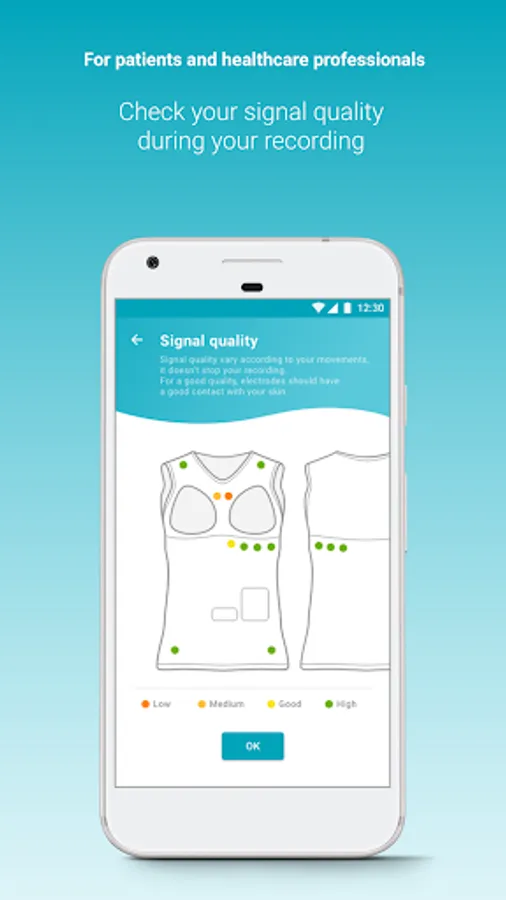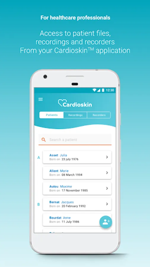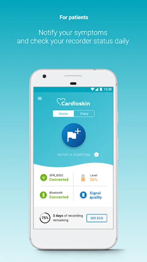 Cardioskin Application is medical device that enables acquisition, recording, storage, transmission, and display of 15-leads electrocardiogram (ECG) in order to analyze potential cardiac pathological abnormalities.