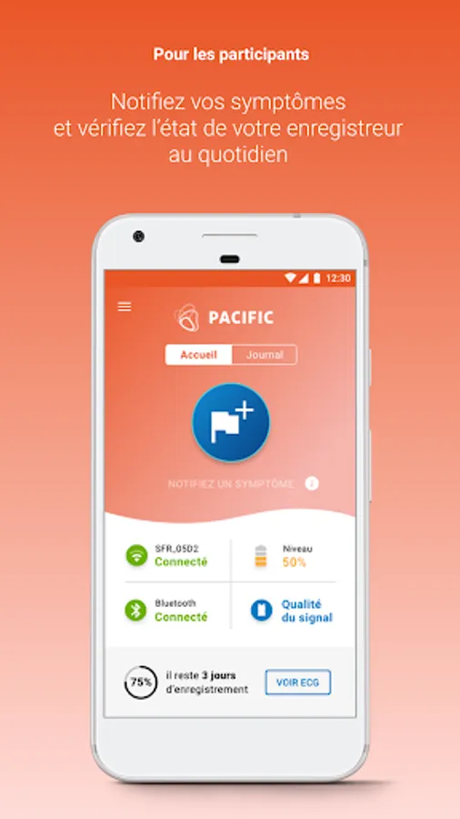 PACIFIC is a medical device that collects cardiac data from ambulatory participants as part of the PACIFIC clinical study. This solution, consisting of a smart textile, a mobile application and a web interface, allows you to record cardiovascular, respiratory and activity parameters.