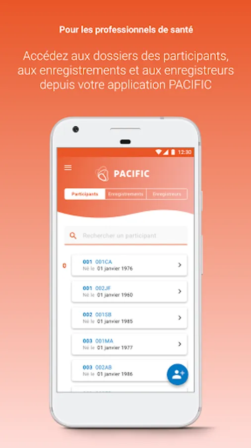 The PACIFIC application is an application for participants and health professionals of the PACIFIC study. It is part of the overall PACIFIC solution and its main role is to enable data acquisition by informing participants about the proper use of the system. The PACIFIC application is required to start a recording, and allows investigators to better understand the peculiarities of participants' signals by allowing participants to report and comment on events occurring during the measurement period.