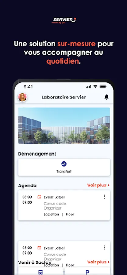Download the application to organize your transfer to the new Servier Paris-Saclay Research and Development Institute in a friendly atmosphere!