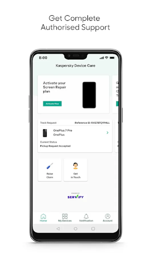 Check your Kaspersky Device Care app to view what stage of the repair process your smartphone has reached, and how your claim is progressing.