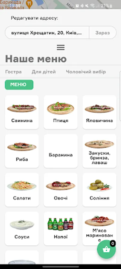 Menu order for delivery to room or address. The application will show the restaurant's current menu and allow you to place an order with payment. When ordering delivery, you can choose delivery to the room (for the hotel complex) or to the address.
