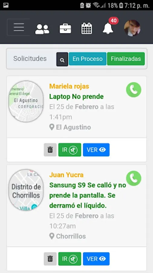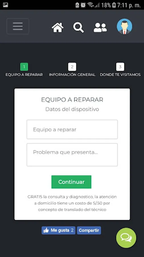 Application service to describe problems related to electronic equipment and contact technicians to solve their problems