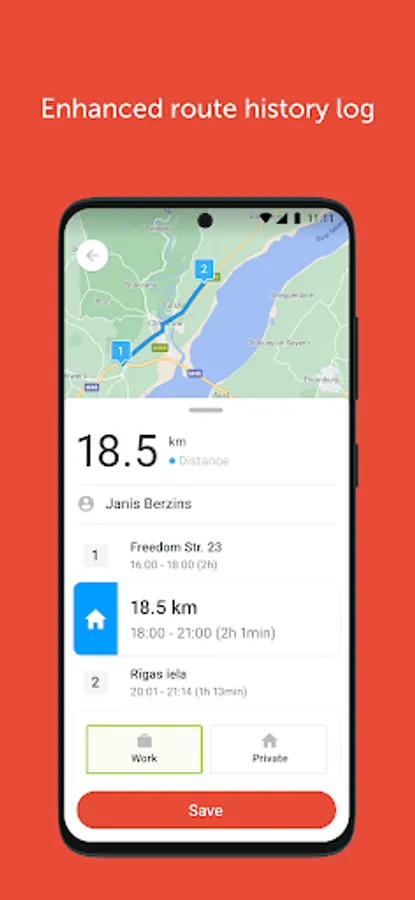 Driving log allows you to manage your private and work trips. You can easily add comments, client name and costs to each route and view reports in the system.