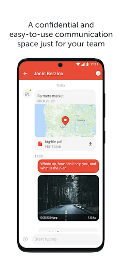 The communication tool provides instant communication between the back-office and your field workers or drivers. Users can easily send messages, exchange photos, videos and other media via the platform.
