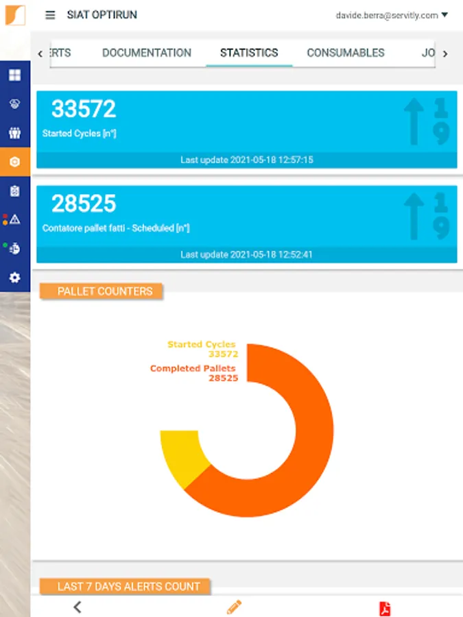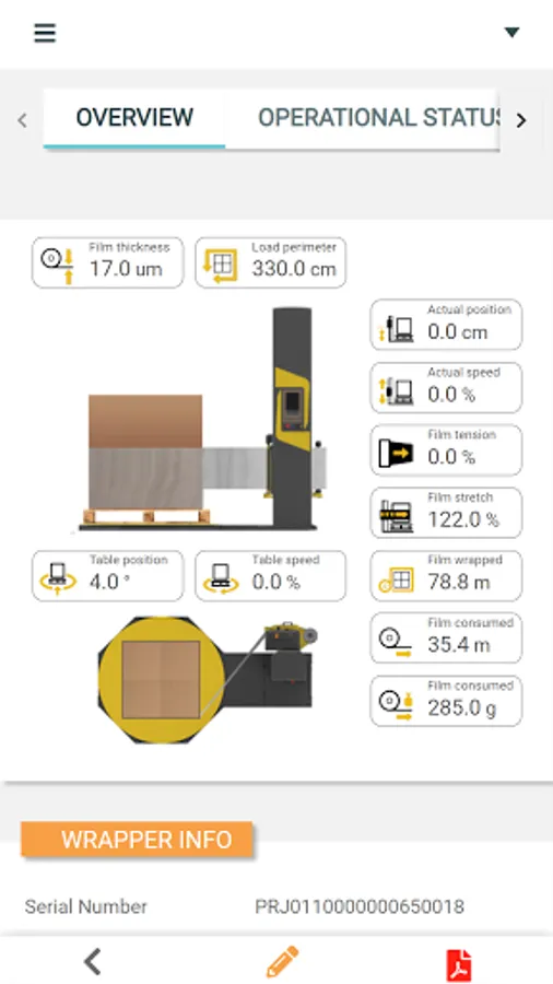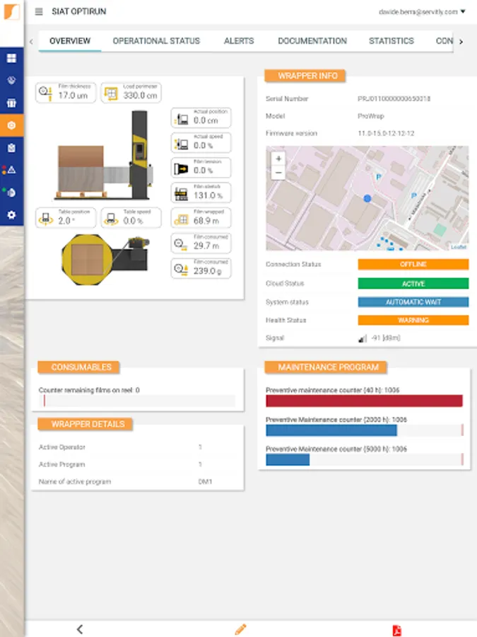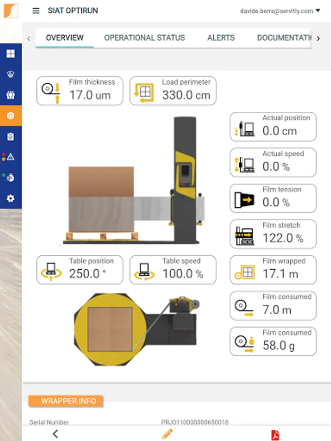 It guarantees saving of resources and time and supervision of machine productivity (up to 30 plts / hour), its working time and film consumption.