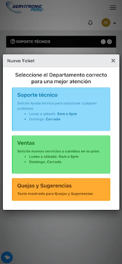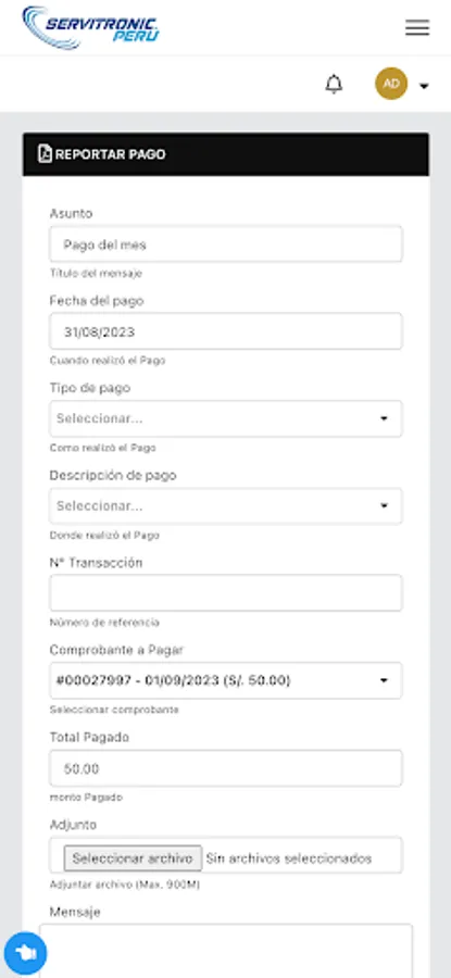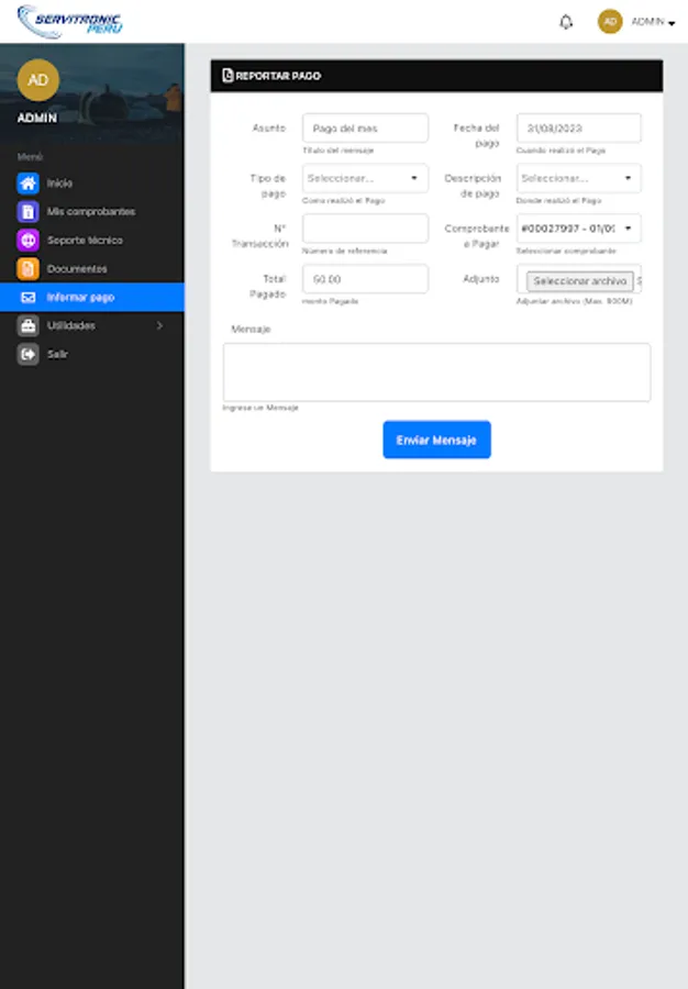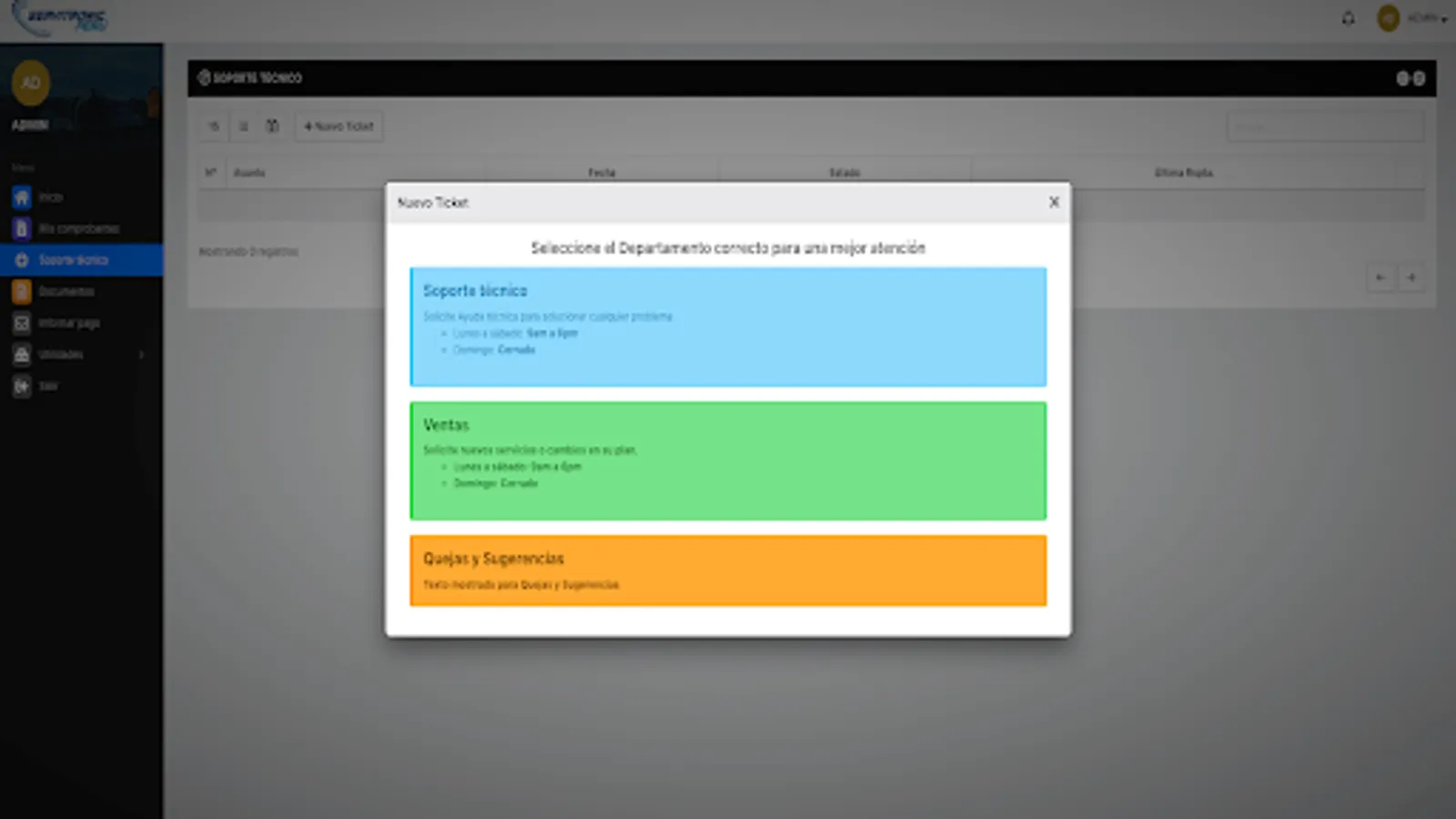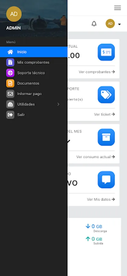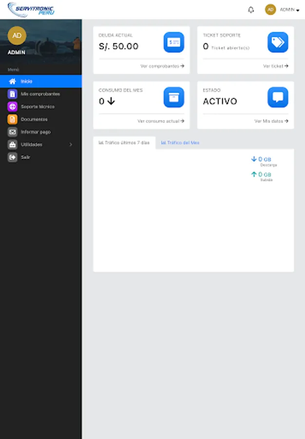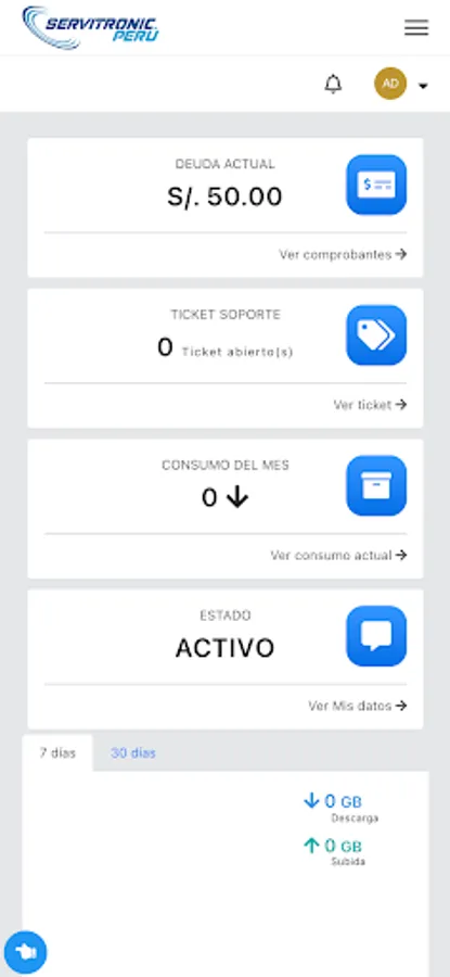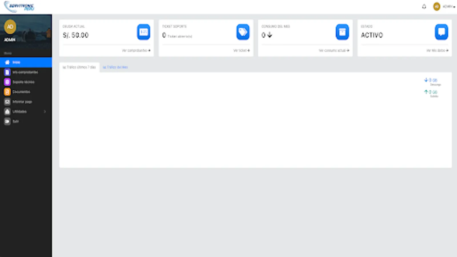 Here you can review your payment receipts, download your invoices, report network problems, see your internet consumption, open a support ticket, among other functions.