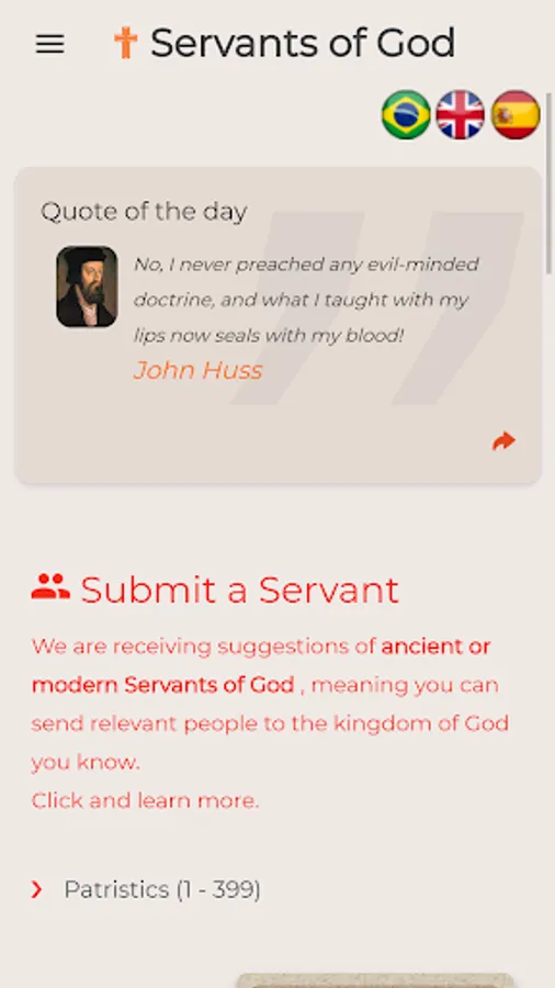 The "Servants of God" app features the biographical data, phrases and videos and sermons of each of God's men and women.