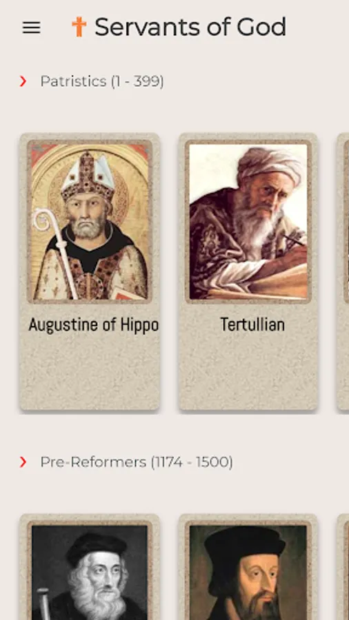We have biographies separated by categories of Pietists, Missionaries, Pre-Reformers, Reformers, and Puritans.