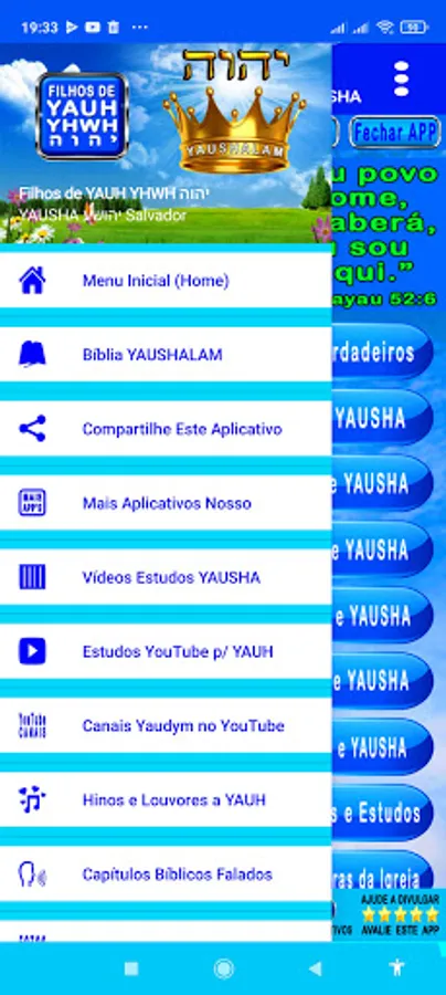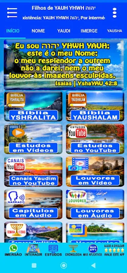 “Toda a Honra, a Exaltação e a Majestade deste Aplicativo, pertencem ao ALTÍSSIMO CRIADOR de toda a Existência: YAUH יהוה dos Exércitos por intermédio de YAUSHA יהושע O MASHIA Primogênito dentre os homens que nos conduz a Salvação de YAUH יהוה.”