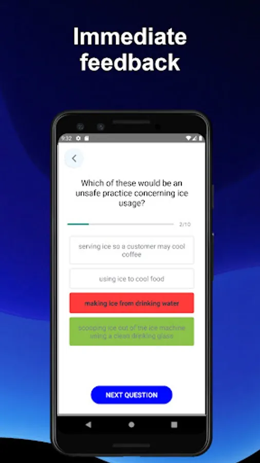 This app is designed to help you prepare for the test. You will get immediate feedback on your correct and incorrect answers. This app can be run offline, you can prepare for your ServSafe test anywhere anytime.