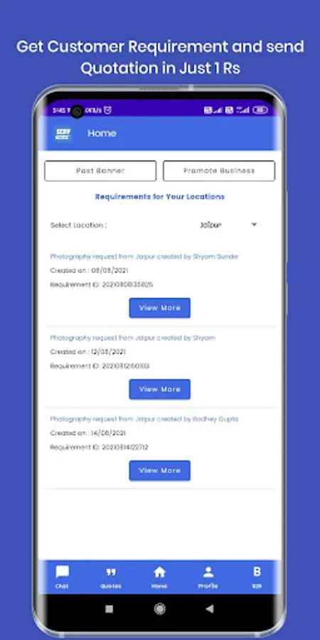 Get requirements from Customers and send quotations to customers only in Rupees 1.