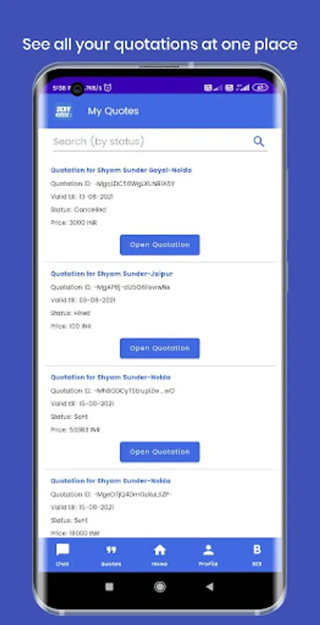 Overview : A Platform to get Customers (B2C) and send Quotations in Just Rupees 1 your business like Furniture, Event management, Photography, Office Maintenance, Modular Kitchen, Interior Decoration, Aluminium work, Solar, Tuition Class, Wedding Planner, Web/App developer . Also connect with Other vendors using B2B Platform.