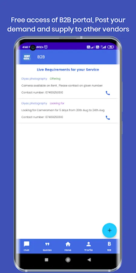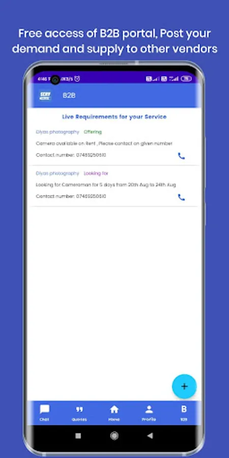 B2B feature: Free platform to connect with multiple other businesses to discuss demands and supplies.