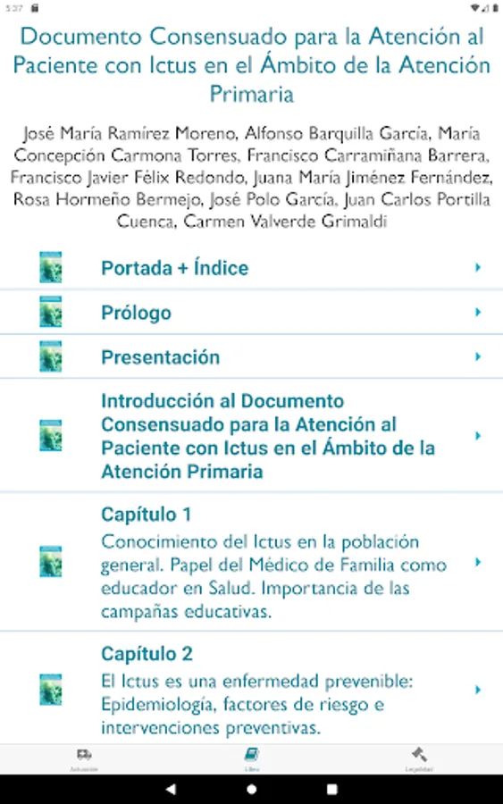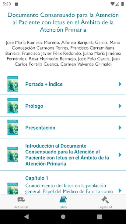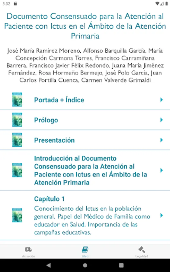 The application also incorporates an access to the book "Consensus Document for Patient Care with Stroke in the Field of Primary Care" and aims to be a tool to help in the activation of stroke care protocols in our community.