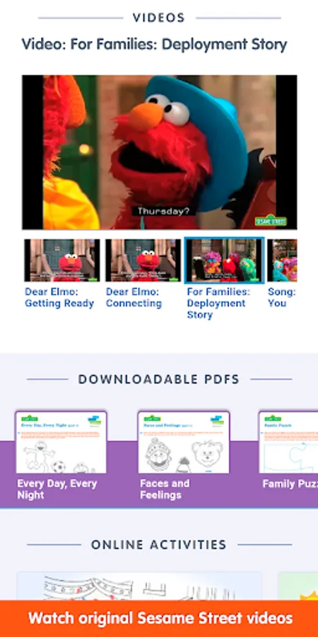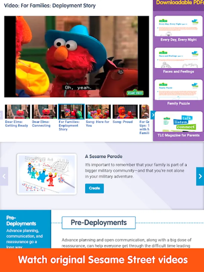 This app and its materials are an extension of Sesame Workshop’s ongoing efforts to support our troops and their families. Related materials include the Feel Electric! app for military children, social media including Facebook.com/SesameStreetForMilitaryFamilies, and the website MilitaryFamiliesNearAndFar.org, which provides engaging tools for military children to create, communicate, and stay connected.