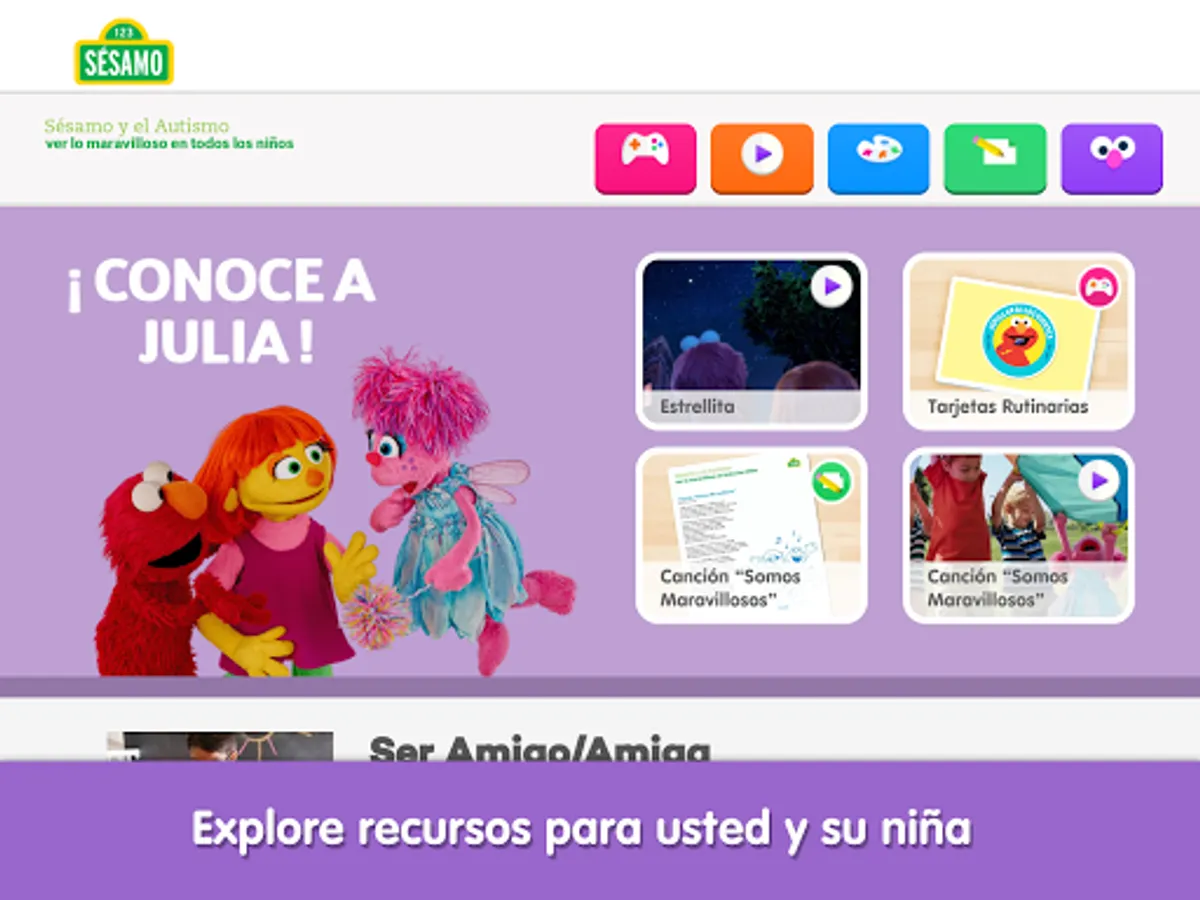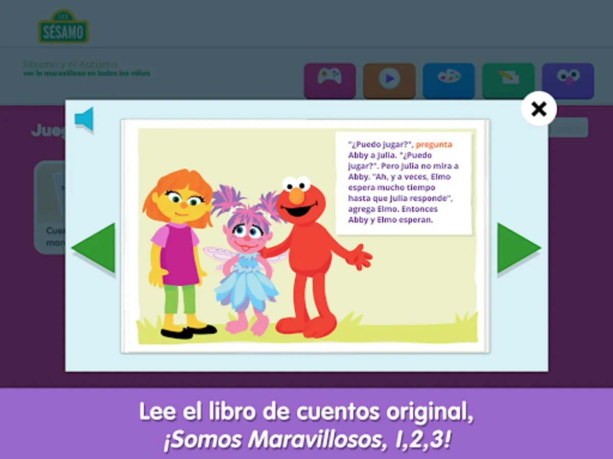 The resources in this app are part of the Sesame and Autism initiative. You can access additional project materials online at sesamo.com/autismo.