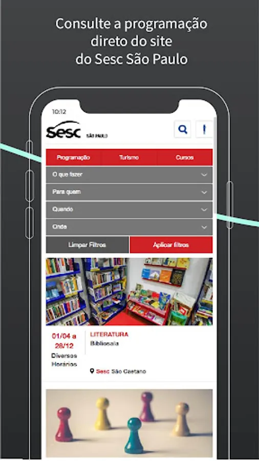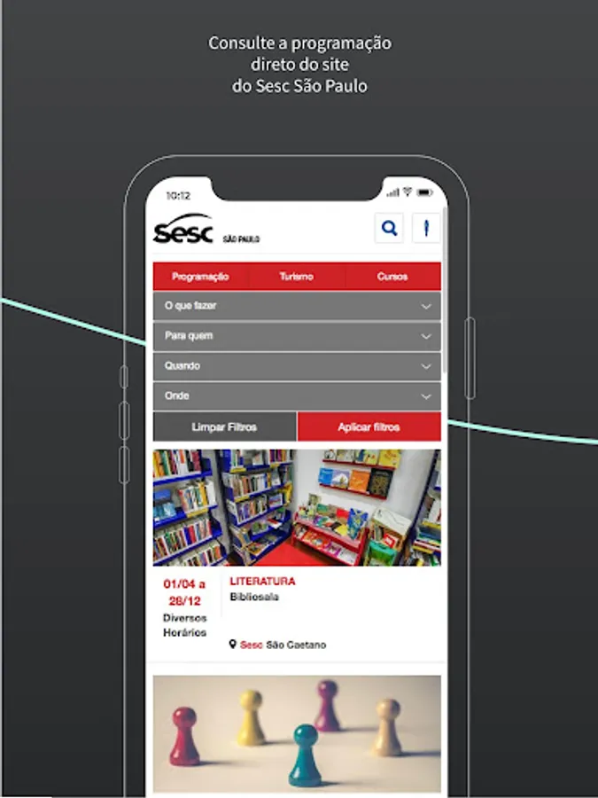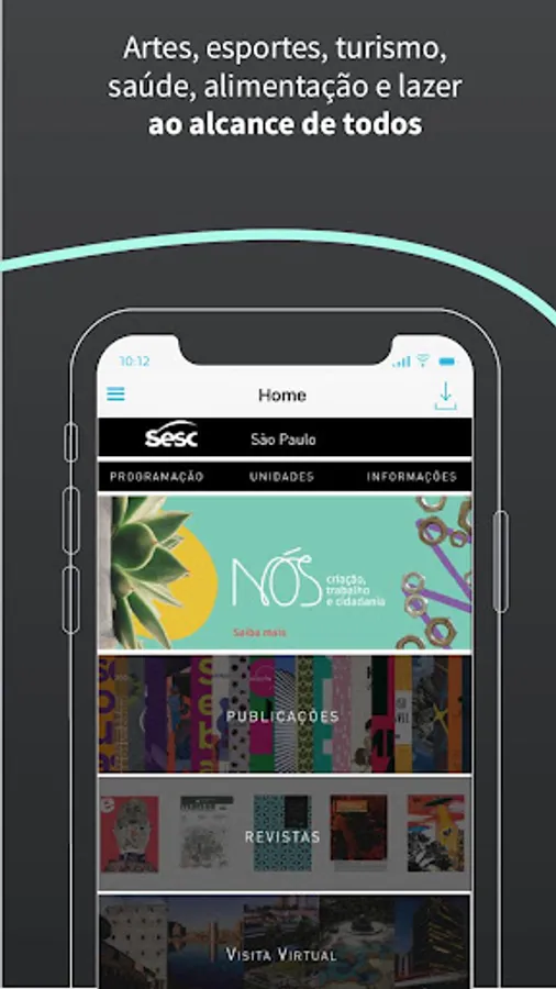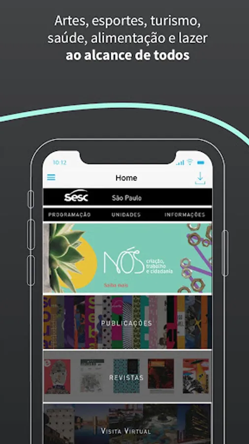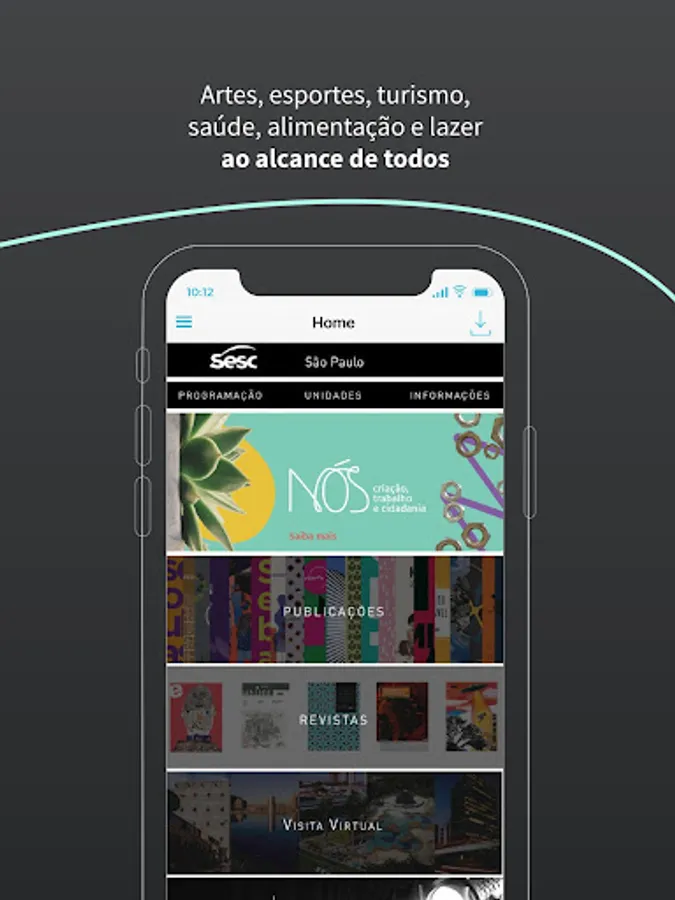 Here you will find the program and address of the units, information about tickets and accreditation, magazines, catalogs, virtual visits to Sesc Units and exhibitions, watching SescTv on demand, among others.