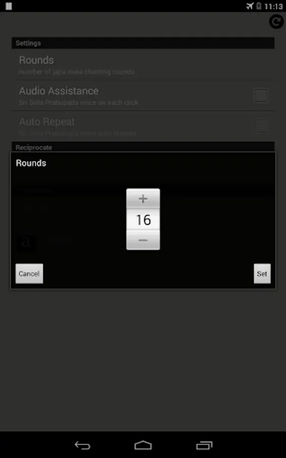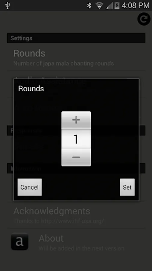 Also, Srila Prabhupada's voice assistance and its background score creates an environment of companionship/group (removing silence & loneliness - especially for beginners with busy lifestyle surrounded with some kind of activity and sound around always)