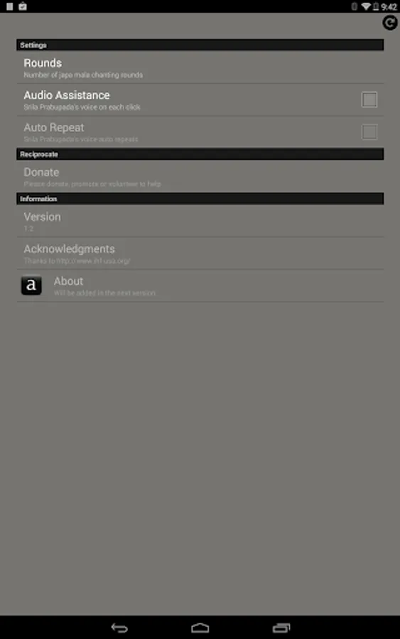 4. Workout/Handsfree mode: Srila Prabhupada's voice auto repeat and auto counter increment.