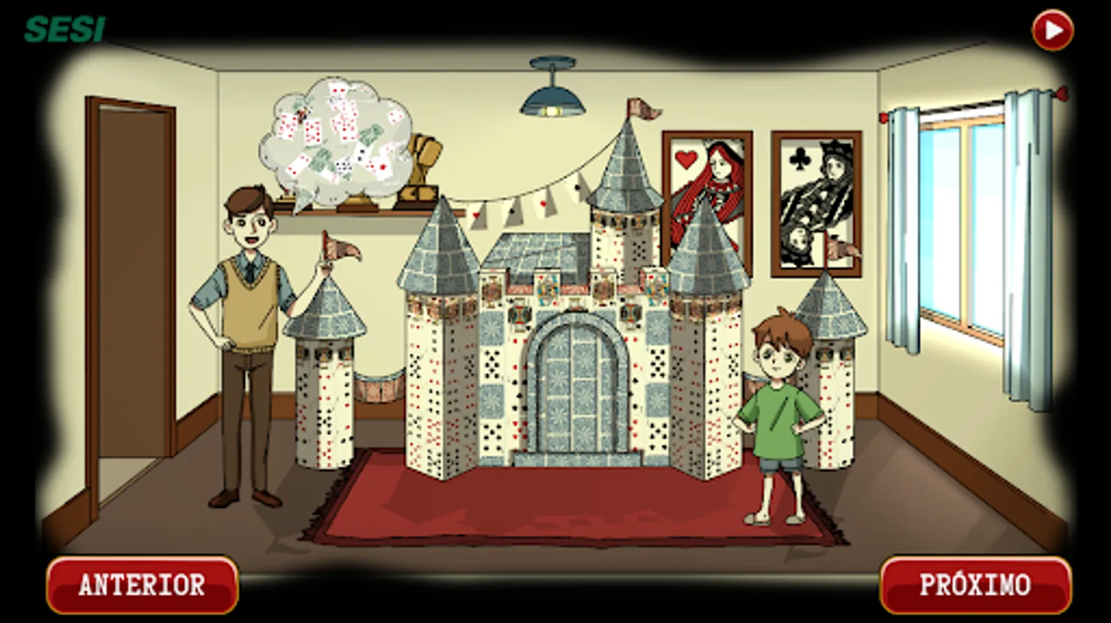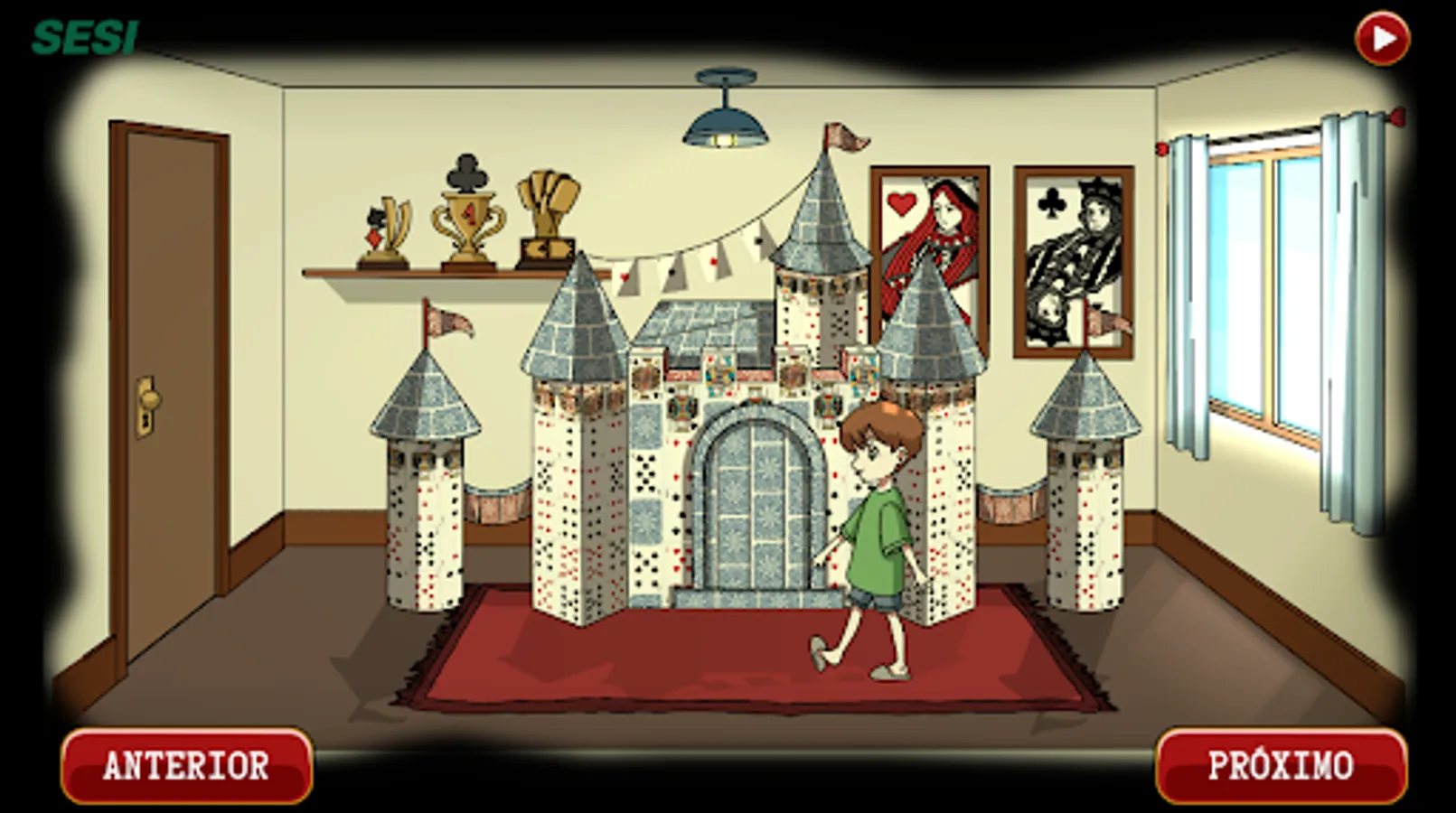 Watch the tale The Castle of Cards. And interact with the scene at the end of each scene to hear the English words.