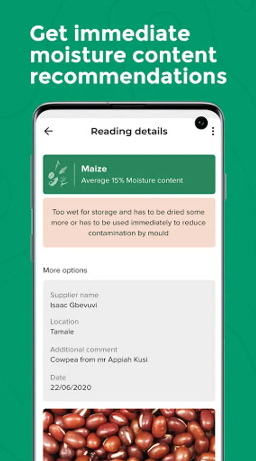 MEASURE lets you record moisture readings from your GrainMate Moisture Meter and get immediate recommendations from the app.