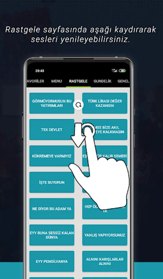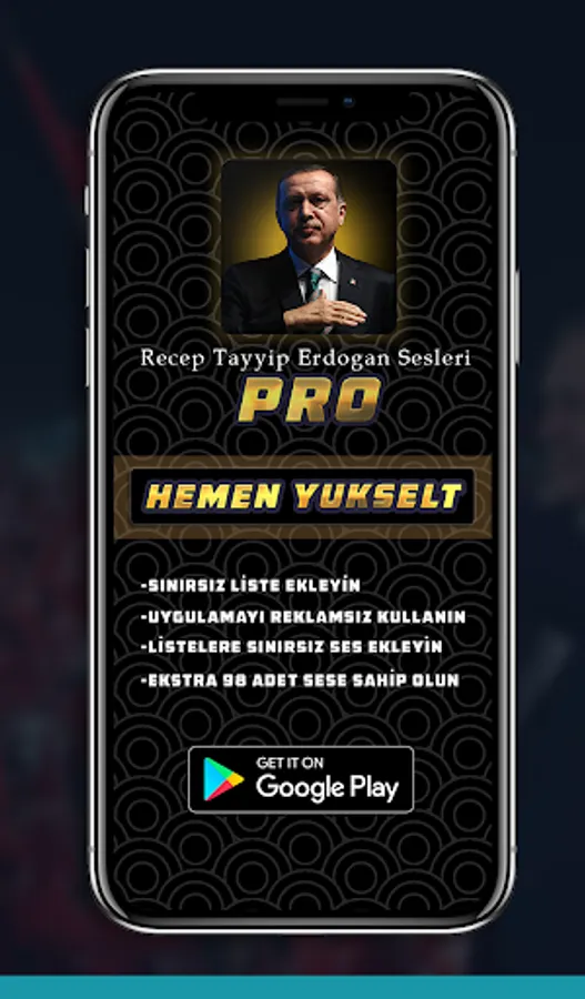 Our President, Recep Tayyip Erdogan, in the squares, at conferences, in the parliament, in the press, etc. Thanks to this program, which consists of the words he said and contains a total of 798 sounds, you can listen to the most beautiful and most enjoyable words of our president whenever you want, without the need for internet, and you can set the words you like as a ringtone or notification sound on your phone.