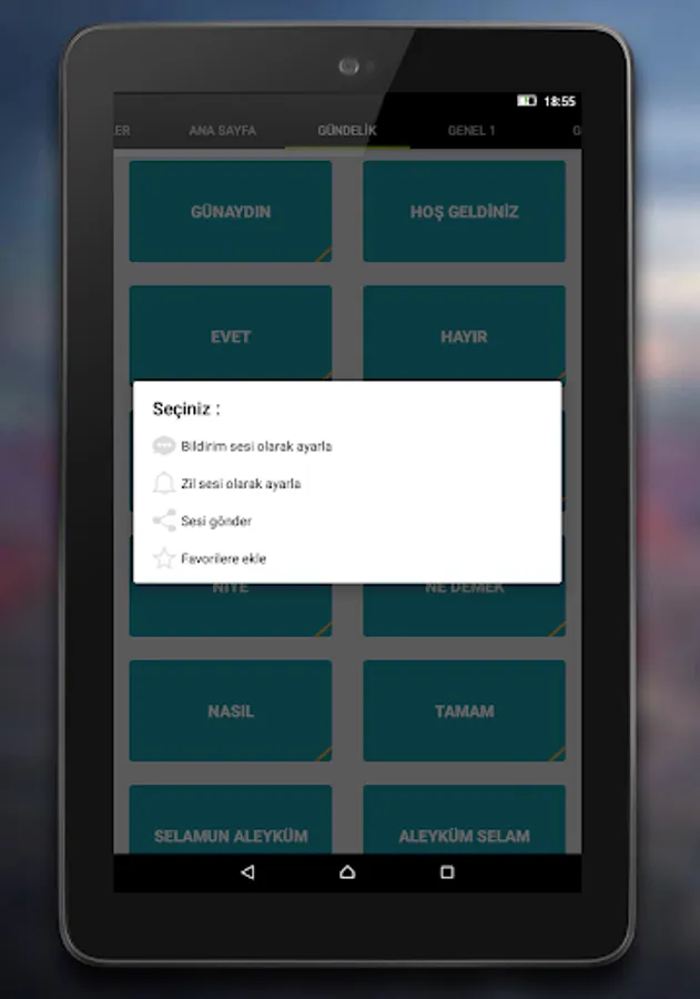 You can add the sound you want to the Favorites page, share the sounds with your friends and acquaintances. For this, simply press the sound you like.