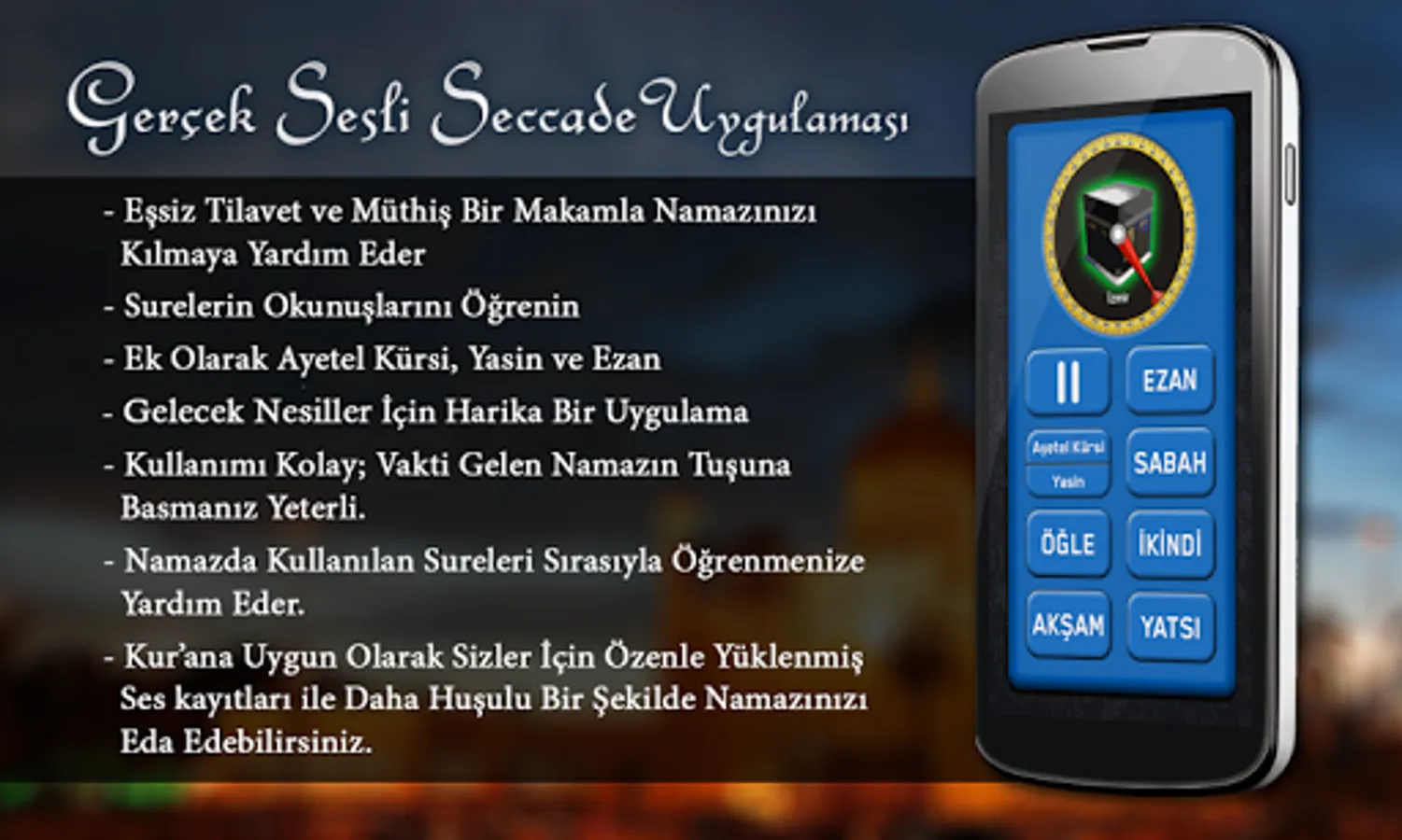 - Easy to use; Simply press the prayer time has come. From 7 to 70 everyone can use easily.