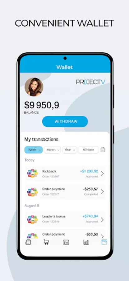 Project V is a beautiful chance to improve your health, increase your wealth, change your lifestyle and achieve the goals you’ve set. Use our app for effective business development, for great purchases and interesting communication!