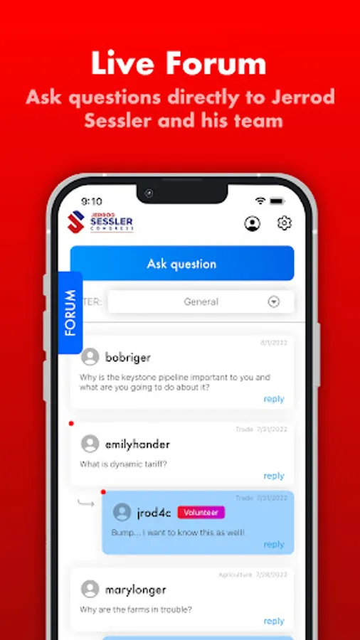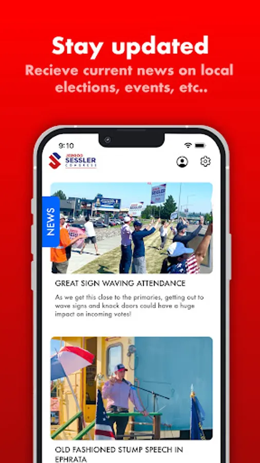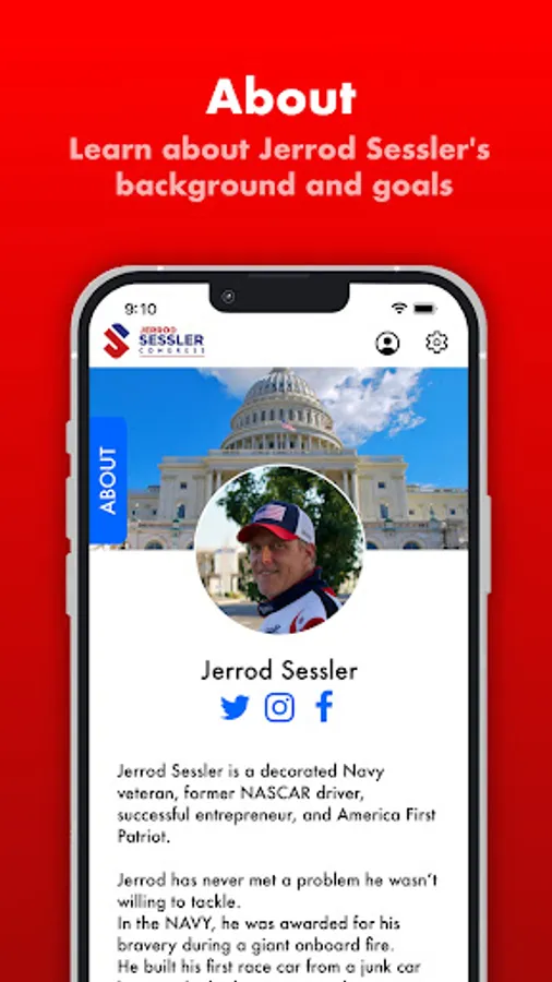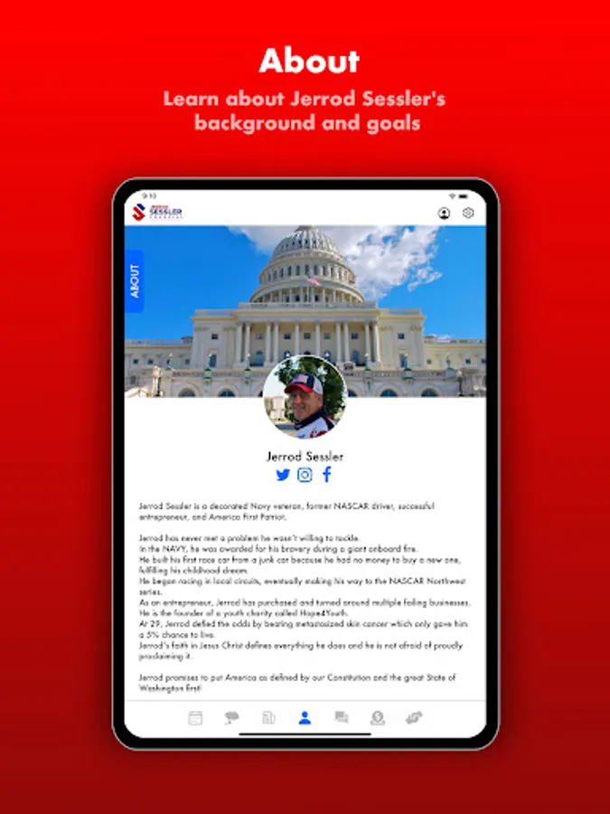 ••• Get easy accessibility to support/donate to the Jerrod Sessler for Congress (R) Campaign (with in app donations coming soon)