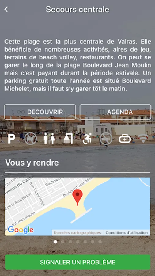 It also allows you to check the weather and the beaches the color of the flags before going swimming.