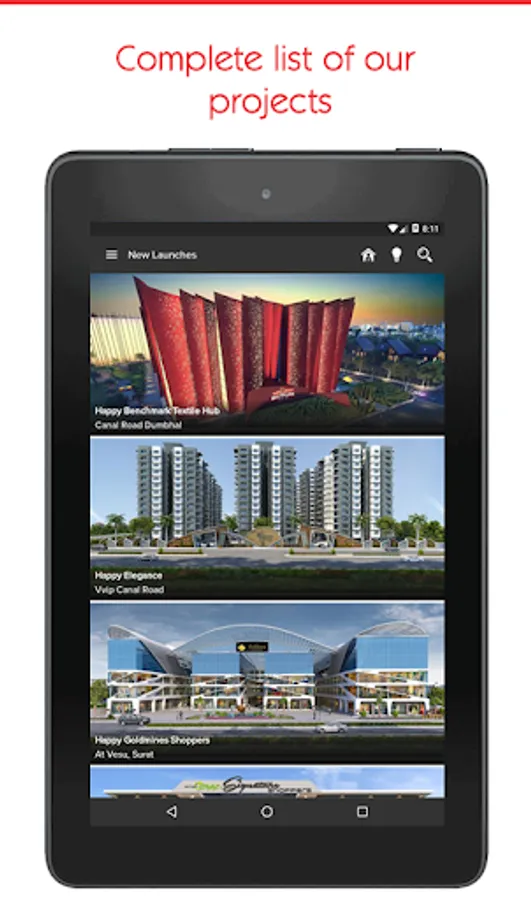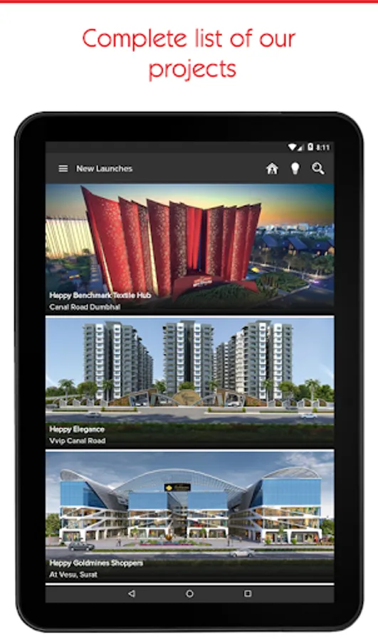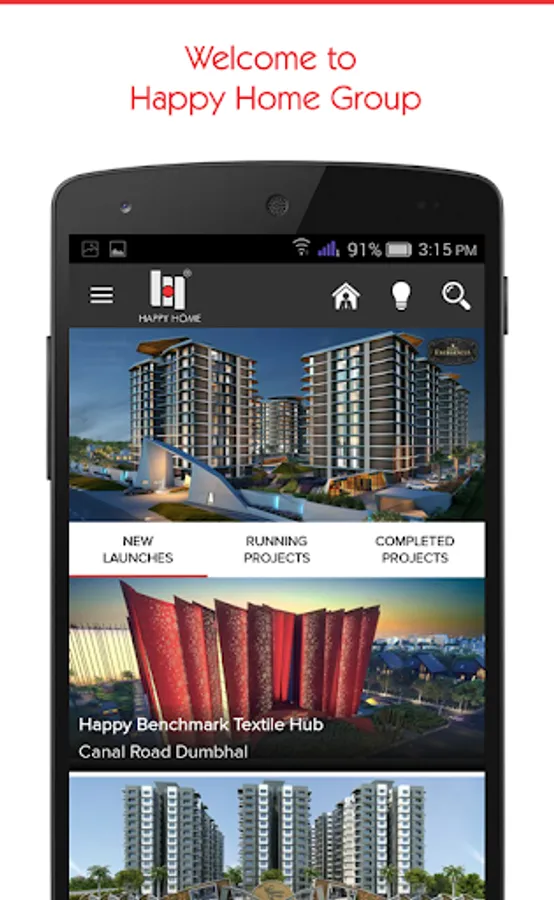 Our mobile application focuses on all live projects, completed projects and upcoming projects handled and executed by Happy Home Group. It also has feature for selling and buying your existing Property. It has several knowledge features such that revenue Records, Tp/dp village Maps, Jantri, Unit Calculator, Loan Calculator and Videos. It also contains very interesting games Memory Game and Piano tiles game which provide very good mind exercise and increase concentration.