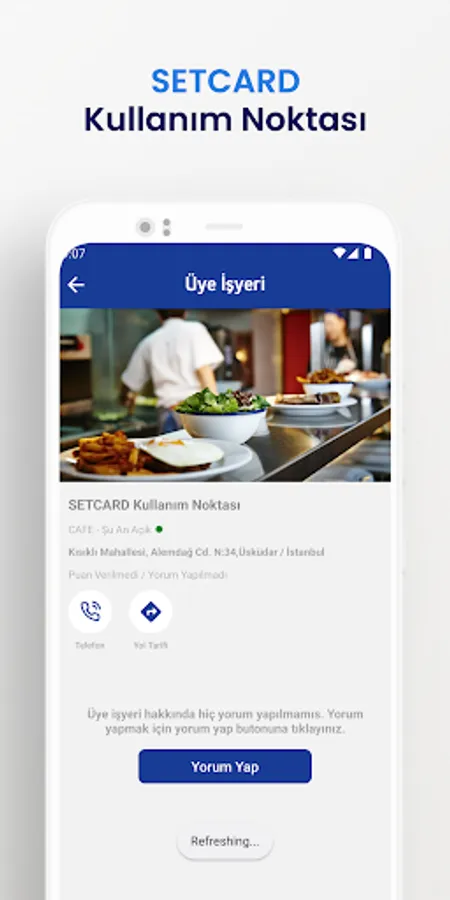 • You can list the closest Setcard contracted points to you and get detailed directions on the map. You can also comment and rate member businesses.