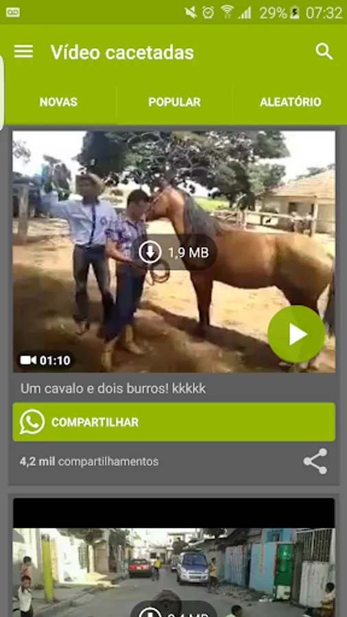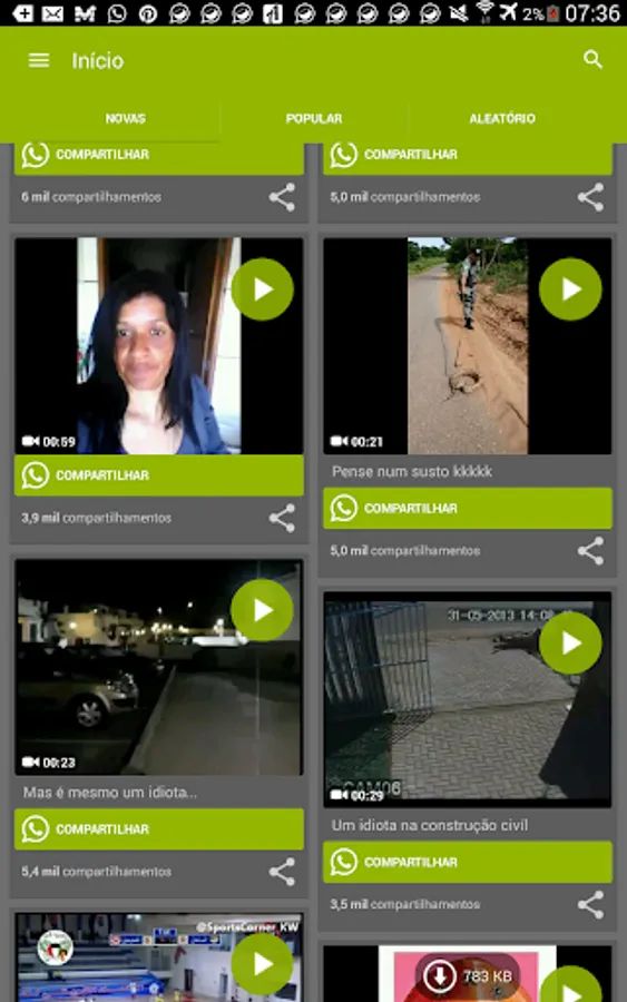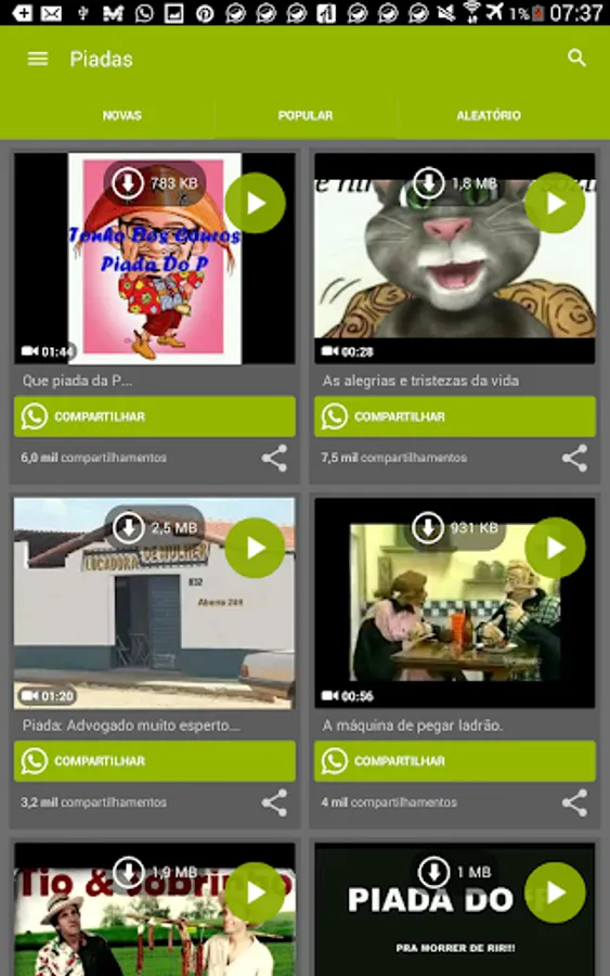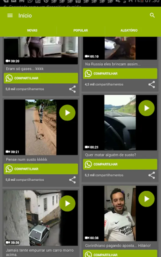 Funny Videos has sharing function directly on Whatsapp, making it easy for you to make Zueira in Whatsapp groups.