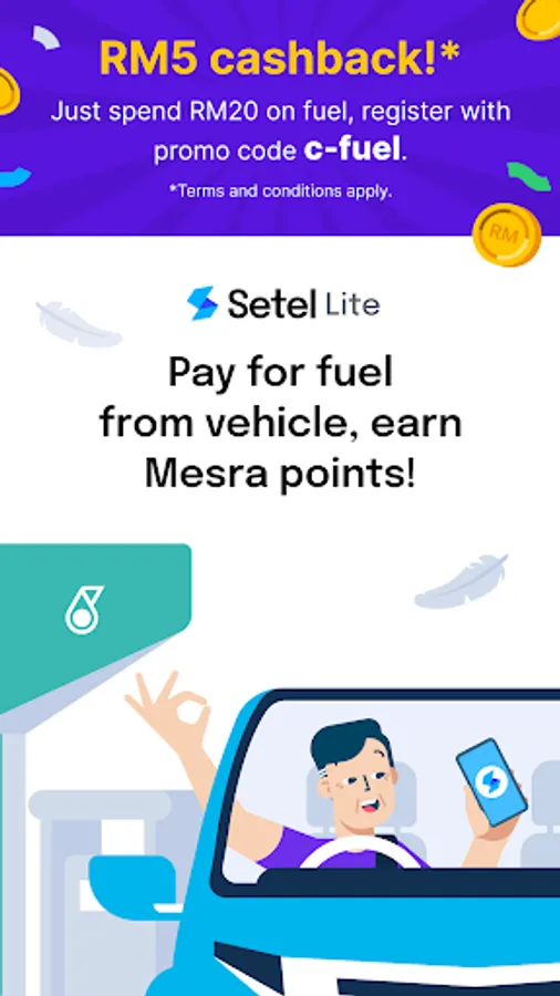 • Automatically receive a virtual Mesra Card when you register with Setel.