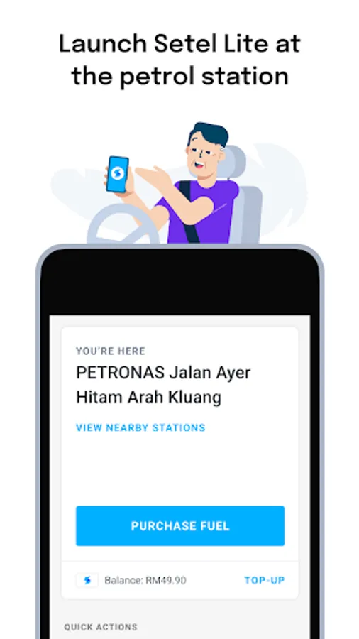 • Pay directly with Family Wallet. Family Wallet owners that are paying for fuel for their family can opt to have family members use Setel Lite instead, if it’s more suited towards their preferences and needs. Setting up or adding members to your Family Wallet requires the main Setel app.