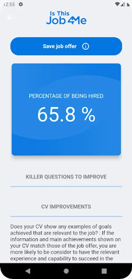 The application constantly improves its suggestions thanks to its continuous learning model to keep the improvement recommendations updated to the needs of potential employers.