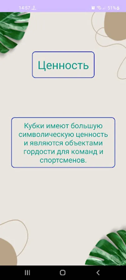 The Cup is a collective prize, which is related not only to athletes. In addition, the ancient tradition of awarding a cup for a victory (in any field) or a great personal achievement is alive to this day. That is why today one can encounter cases of presenting cups as a memorable gift to students, specialists in various fields, and artists.