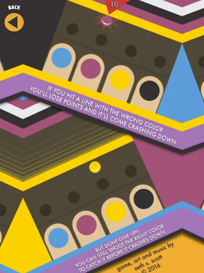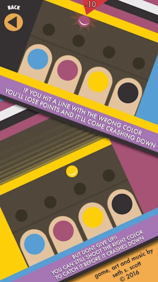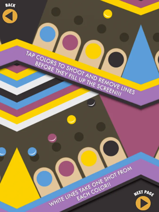 • Swipe across all four buttons to shoot one of each color for quick removal of those pesky white lines!