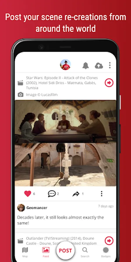 📸 CAMERA: ShotSync camera with scene overlay and capture. With our in-app ShotSync camera, SetJetters doesn’t just bring you to the exact shot location - it places you directly into your favorite on-screen moments. Capture a side-by-side comparison of the original film’s shot with yours, and then share your cinematic adventure straight to the SetJetters app homepage or direct to your social media.