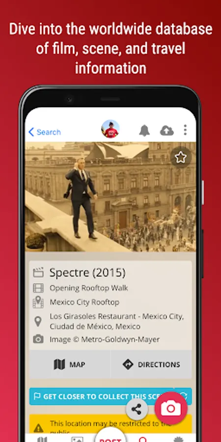 Search for and travel to your favorite film scene in a world of movie locations on our interactive map. Take a photo with the ShotSync camera and share it. Find out what to see, eat, drink and do nearby.