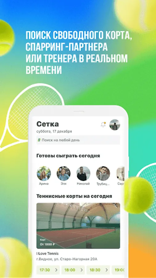 Net is an application for tennis amateurs and professionals that will help you quickly and easily find, book and pay for an online court, as well as find the right partner, coach or student.