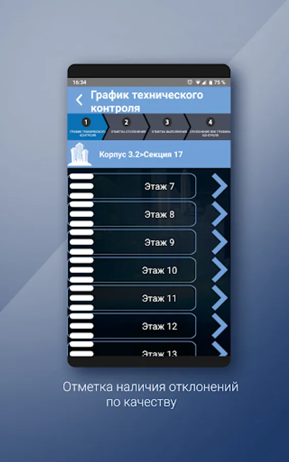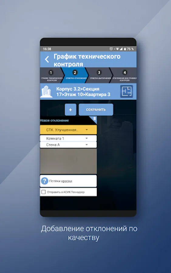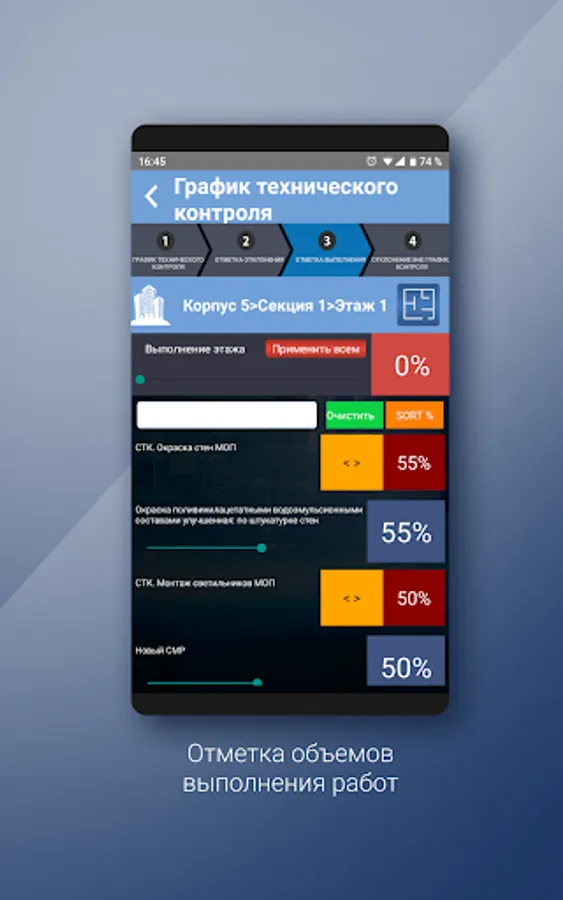 Input and accumulation of current data: 1. On the volume of actually completed construction and installation works; 2. By deviations in the quality of work performed.