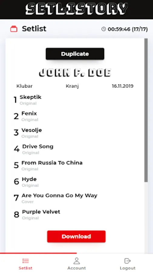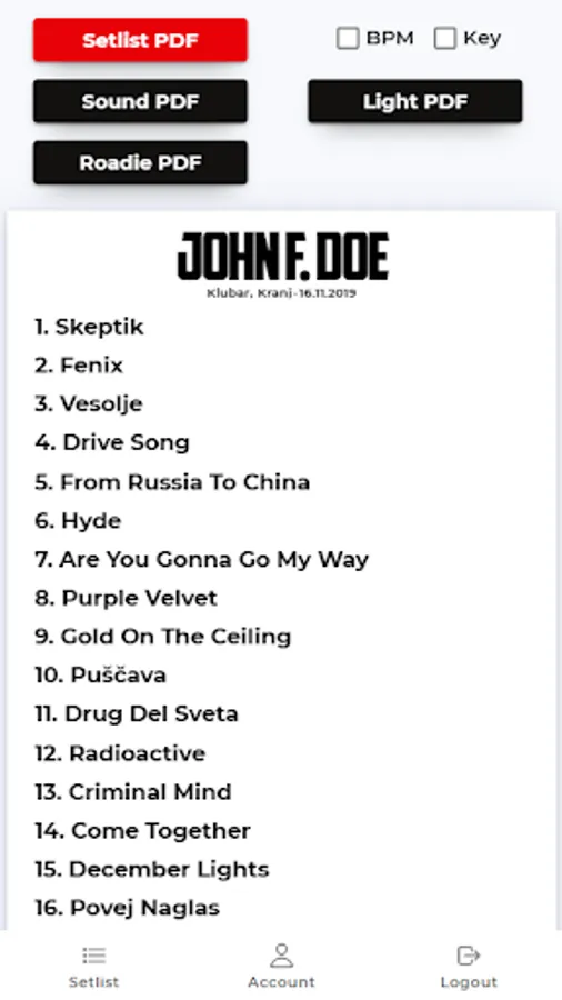 • PDF export - the setlist can be exported to a ready-to-print format (you can optionally show BPM and key)