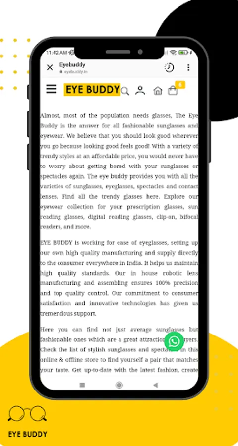 EYE BUDDY is working for ease of eyeglasses, setting up our own high quality manufacturing and supply directly to the consumer everywhere in India. It helps us maintain high quality standards. Our in house robotic lens manufacturing and assembling ensures 100% precision and top quality control. Our commitment to consumer satisfaction and innovative technologies has given us tremendous support.