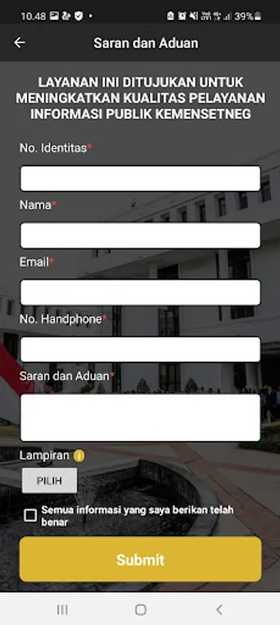 This application is provided by the Information and Documentation Management Officer, Ministry of State Secretariat to provide convenience in obtaining public information services such as requesting information or submitting objections to public information services